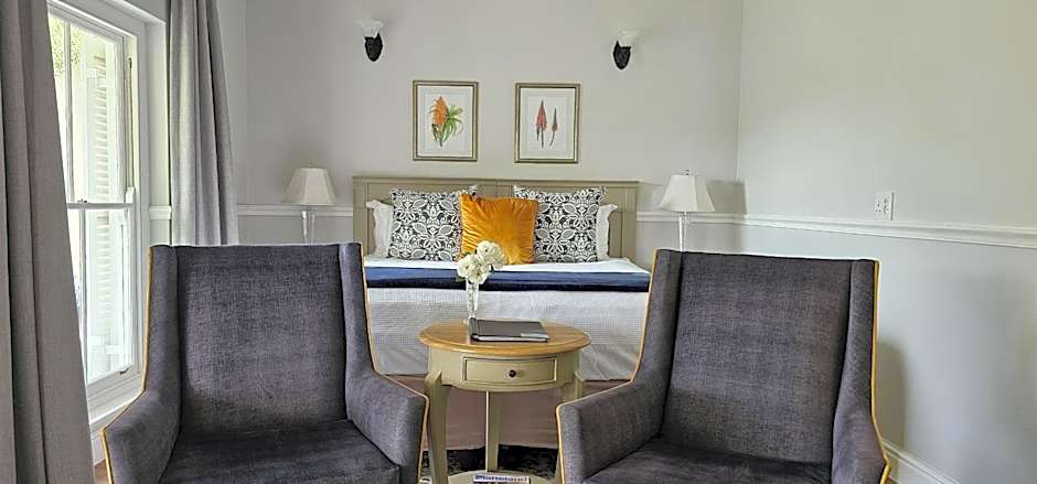 With a patio overlooking the garden and mountains, this spacious room includes a private bathroom. It includes extra length Twin Beds and a seating area with a fireplace. The room has a front and rear entrance.